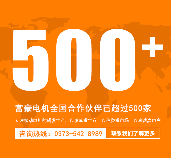 新鄉市富豪電機制造有限公司是集產品開發、設計、制造、銷售于一體現代化新企業。主要經營振動電機及配件的銷售。本公司將一直秉承“***質量、服務用戶”的服務宗旨,誠信與各界用戶通力合作,互惠互利,攜手共進!我公司**以質量求生存、以信譽求市場、以真誠贏用戶,經過多年的努力探索,積累了豐富的設計、制造經驗;我們將竭誠為您服務。我們愿以***的產品、合理的價格、周到的服務,竭誠歡迎各新老客戶光臨我公司...